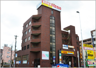 駅前ロータリーすぐのアズキ色のビルの2階にあります。